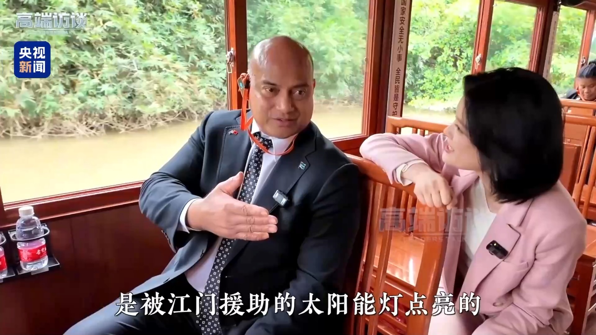 瑙鲁总统戴维·阿迪昂今年再次来到广东江门。在游览小鸟天堂国家湿地公园的游船上,他向总台《高端访谈》栏目分享了哪些话?一起来看看。